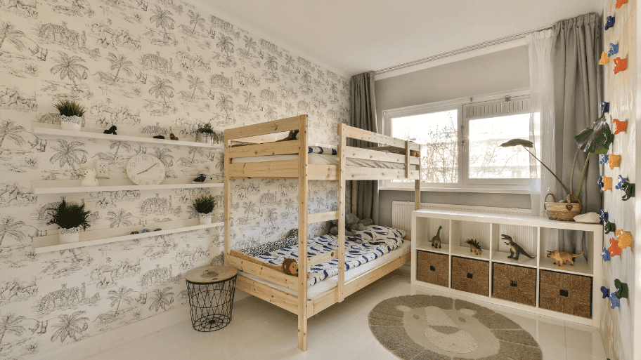 Това е едно от предимствата на детските тапети: те могат да добавят нотка причудливост и магия в детската стая. Популярните дизайни на детски тапети за детски стаи включват сцени с животни и природа, както и анимационни герои. Можете също така да намерите тапети с ярки шарки и нюанси или дори да проектирате свои собствени. Например, детските тапети с космическа тематика включват планети, звезди и други небесни обекти, които със сигурност ще завладеят въображението на детето ви, докато детските тапети с тематика на джунглата, от друга страна, включват игриви животни и ярки листа, които ще пренесат спалнята на детето ви в дълбините на джунглата.
